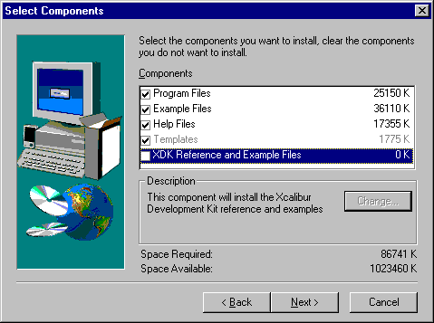 Run SETUP.EXE of the XC core system and install it on the local hard disk. Install the default components: