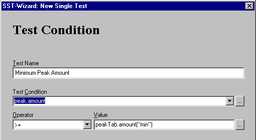 From the Predefined Tests list, select the Minimum Peak Amount test.
