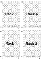 Racks for 96 well plates and Schott bottles must not be mixed with any other rack types.